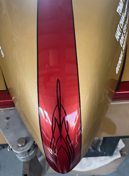 Pinstriping artwork for the rear of the rear cowling completes the job